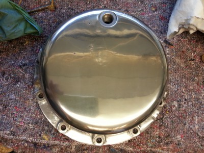 Cast alluminium motorcycle part . Remove machine marks/scratches and polish.